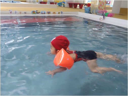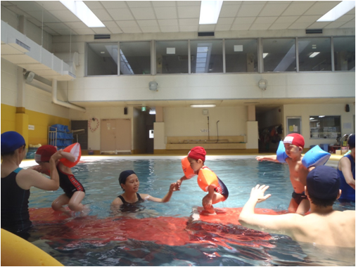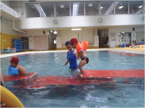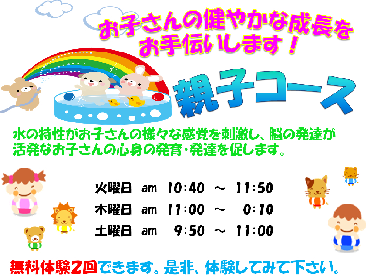 水の特性がお子様の様々な感覚を刺激し、脳の発達が活発になり心身の発育・発達を促します。