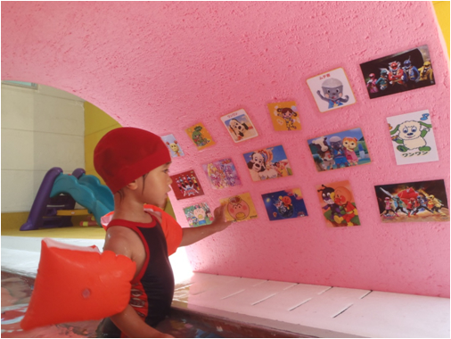 お子さんがトンネルまで泳いで、好きな絵を選んで行きます。