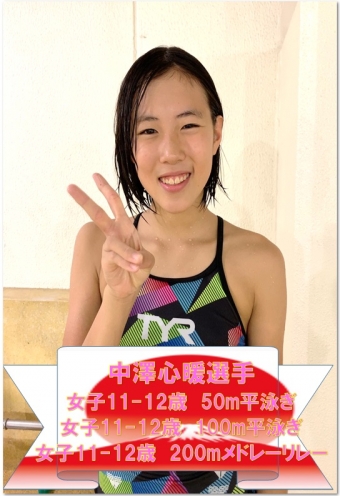 | 6月6日(日) 千葉県国際総合水泳場にて行われました‼ B決勝 第6位 200M 平泳ぎ(中2) 中澤 心暖 2-31-60 オリンピック選手と競い合い全体の14位となりました。 |